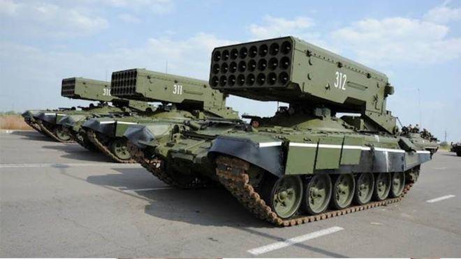 据了解,为习惯非对称作战新模式,各军事强国继续推进武器装备的立异研制,比方俄罗斯在T-72坦克基础上搞出了TOS-1A重型喷火坦克。该坦克机动性较强,可以对超越4万平米范围内的方针进行进犯,人送绰号“亚核武器”。