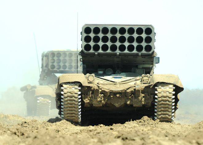 鉴于火箭弹威力巨大,俄军将其射程设定在500米至6000米之间,其采用了云爆弹的进犯原理。所谓云爆弹,便是燃料空气弹,经过将燃料在进犯方针上空开释的方法以构成气溶胶云雾。